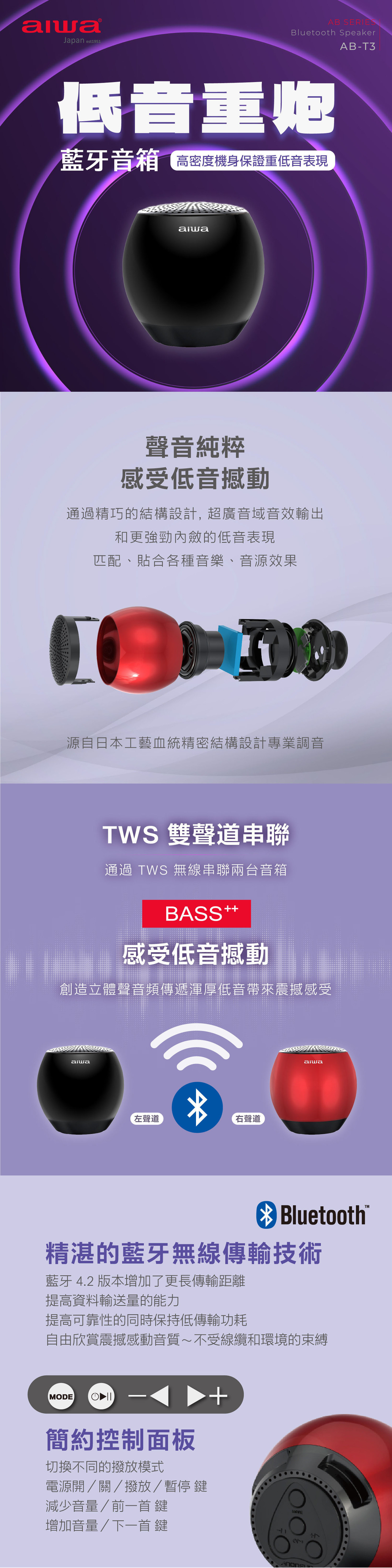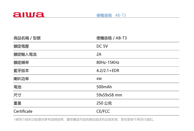 品名 : AIWA 愛華 輕巧便攜藍牙喇叭