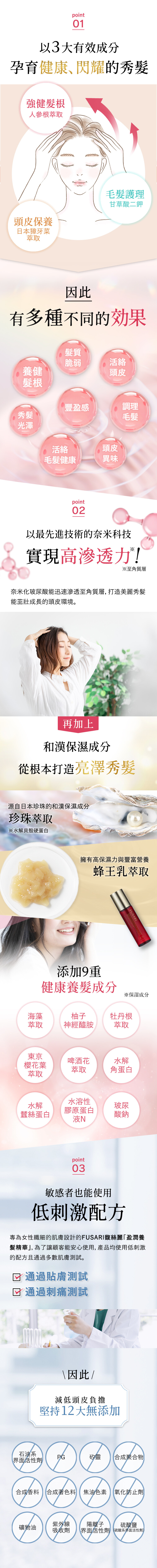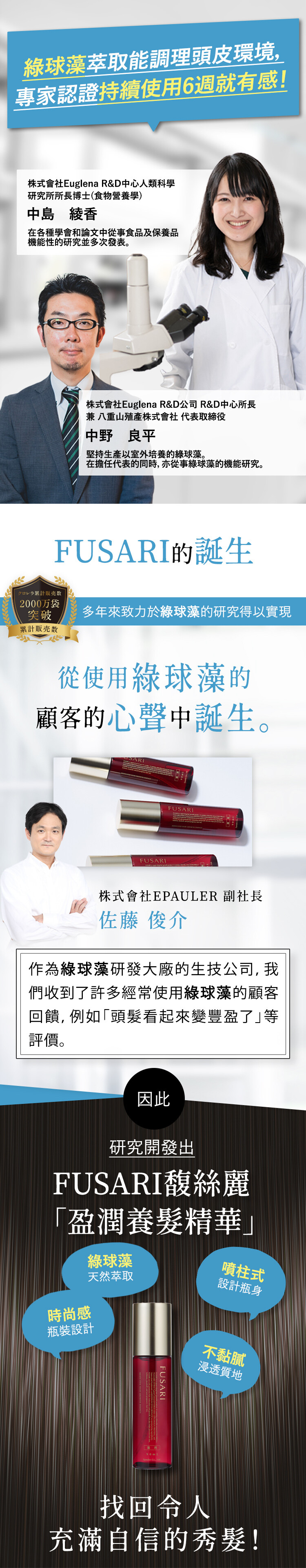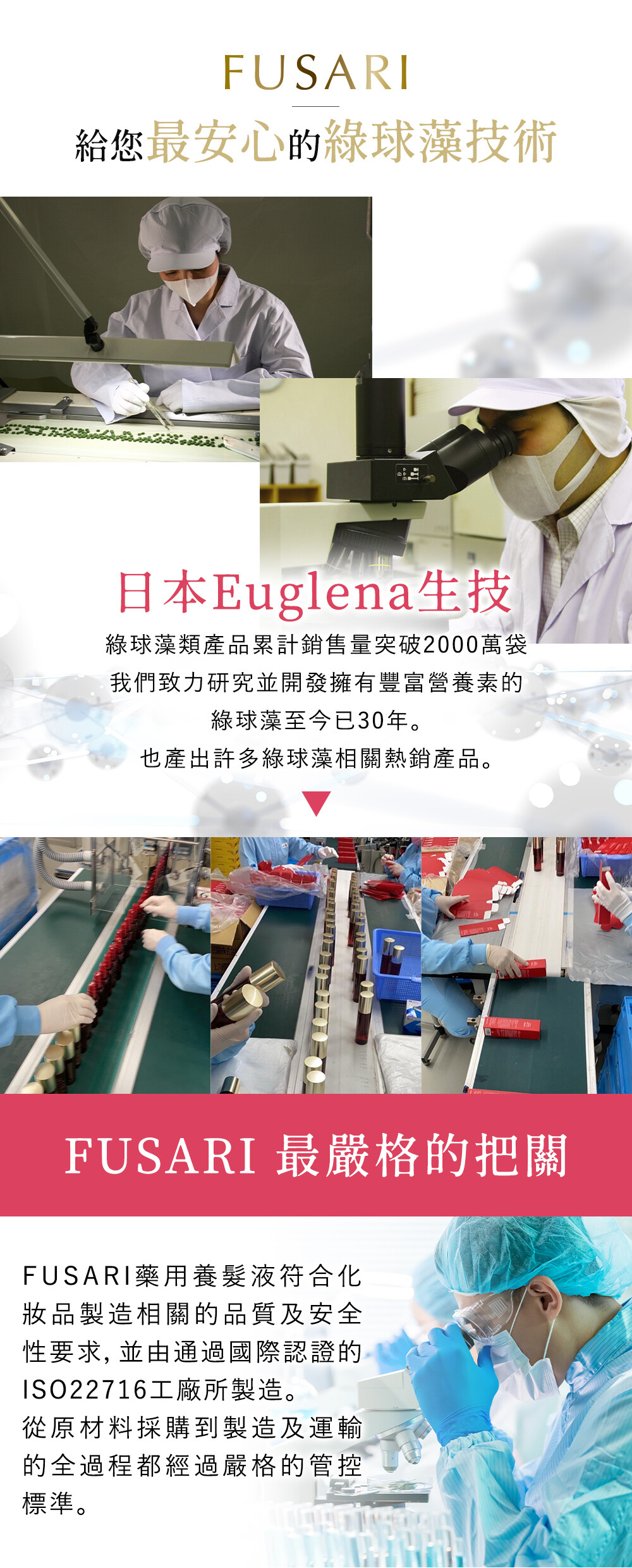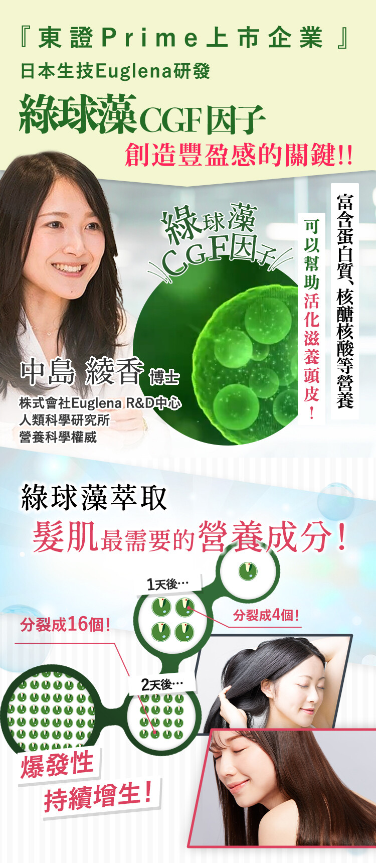 作為頭髮的高營養來源,添加高濃度綠蟲藻萃取。