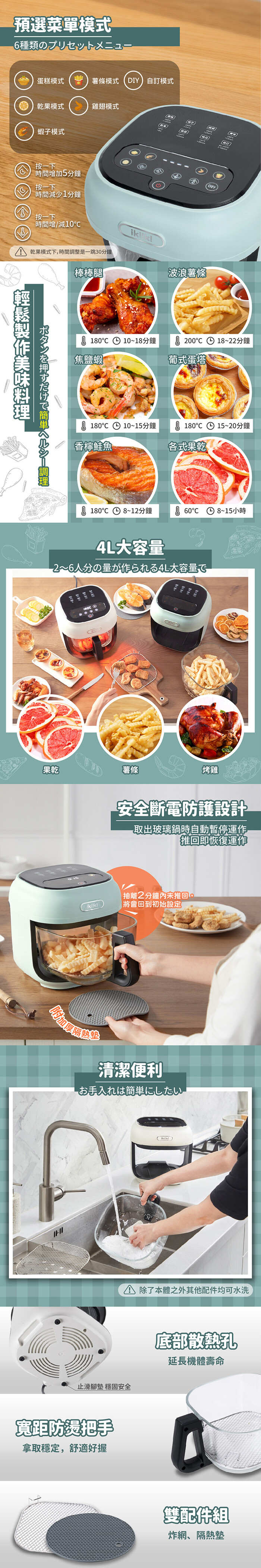 .配件:主體、料理鍋、炸網、隔熱墊