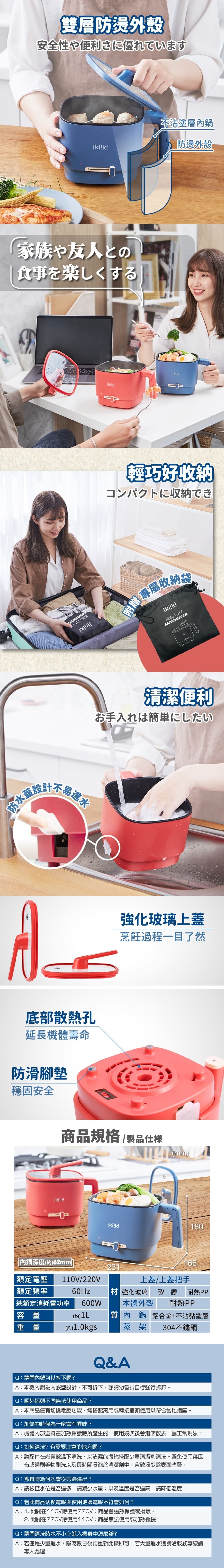 【ikiiki伊崎】雙電壓輕旅隨行鍋 IK-TK4301(紅)/IK-TK4302(藍)