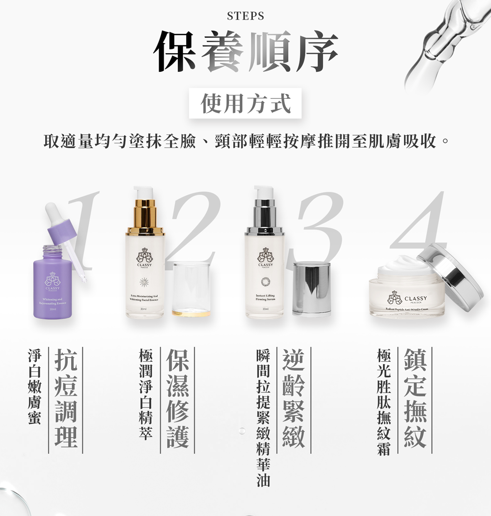 用途:延媛衰老、淡化細紋,復活肌膚提升修護能力,增強肌膚屏障僅製鎖水,撫平細紋,讓肌膚光滑細繳。