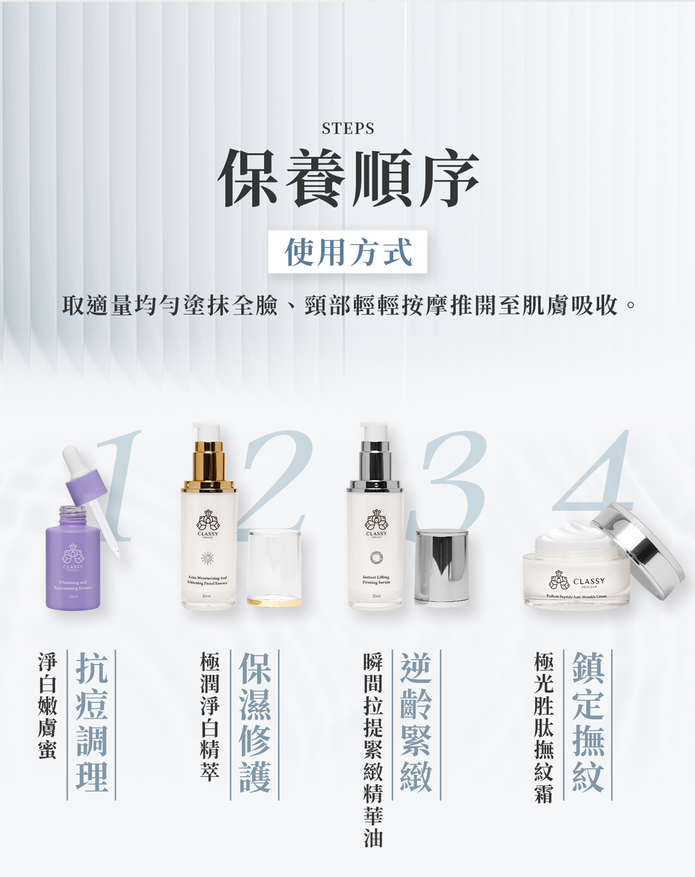 用途:增強皮膚防禦力,具有四重保溼效果,多重植物精萃淨白嫩膚,舒緩肌膚乾燥不適感等、撫平皺紋和活化肌膚。