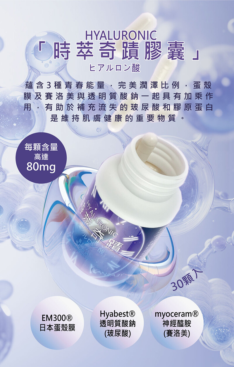從內部提升彈性與光澤;搭配【時萃奇蹟膠囊】,萃取多種珍貴成分,