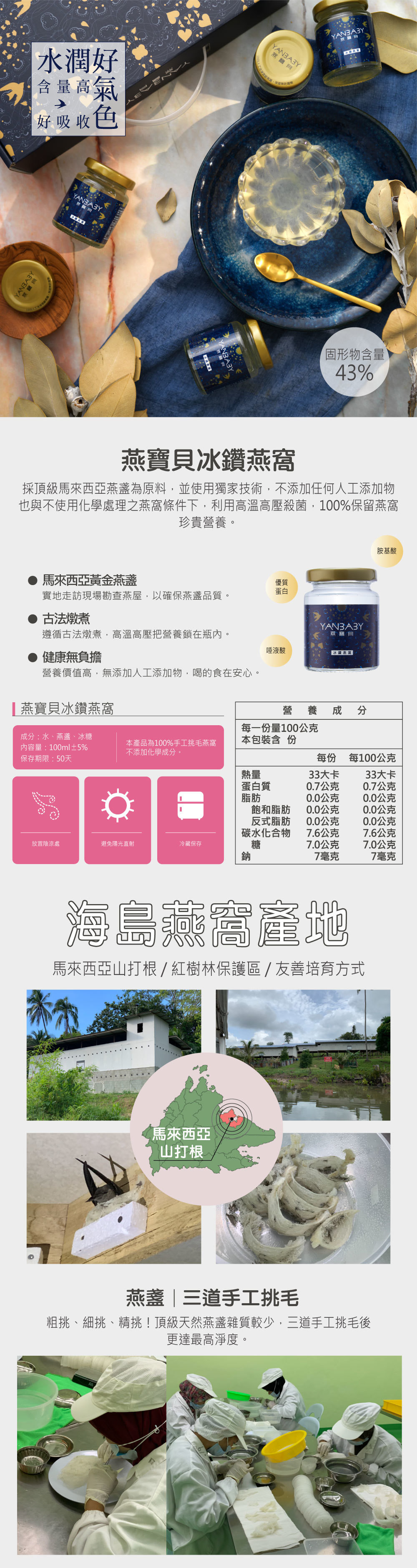 採頂級馬來西亞燕盞為原料,並使用獨家技術,