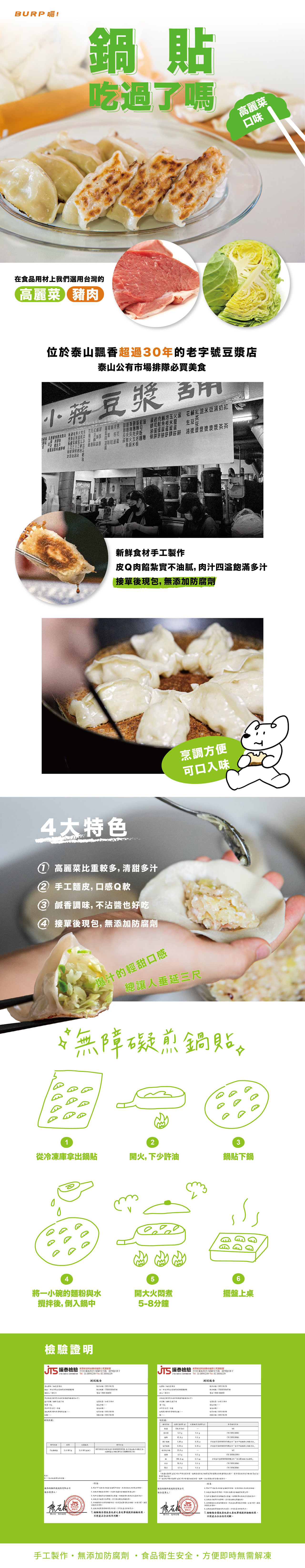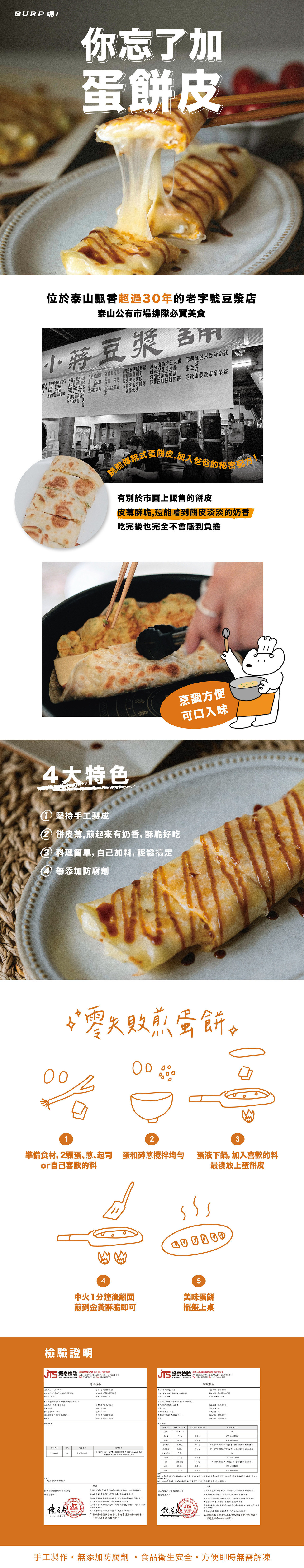 淨重:蛋餅皮410±10g、高麗菜鍋貼900±10g
