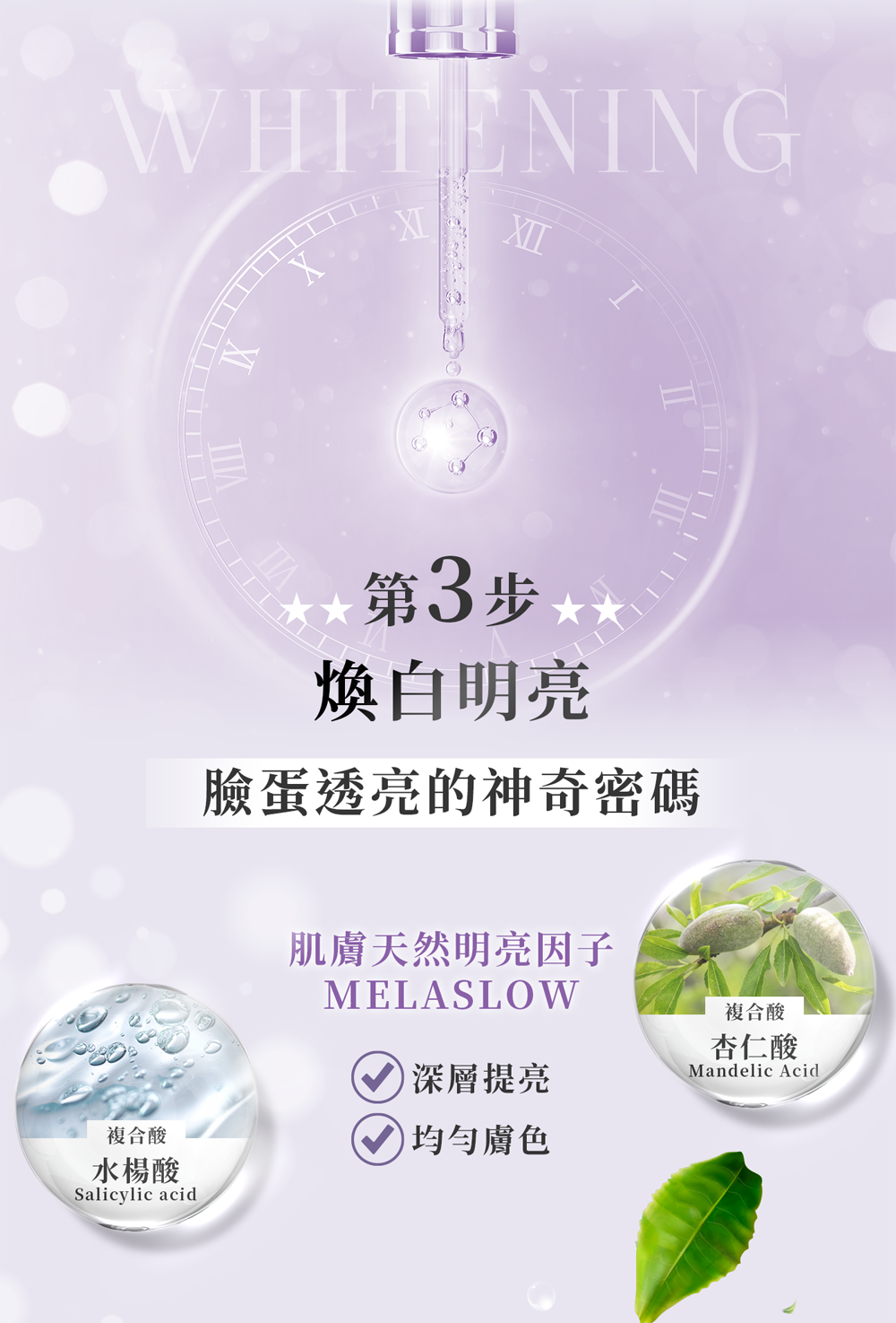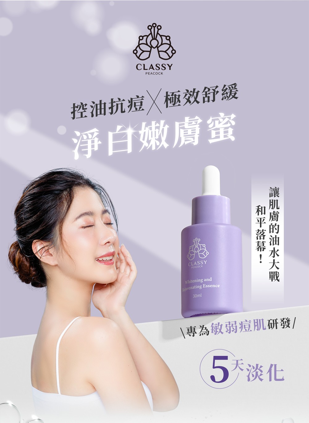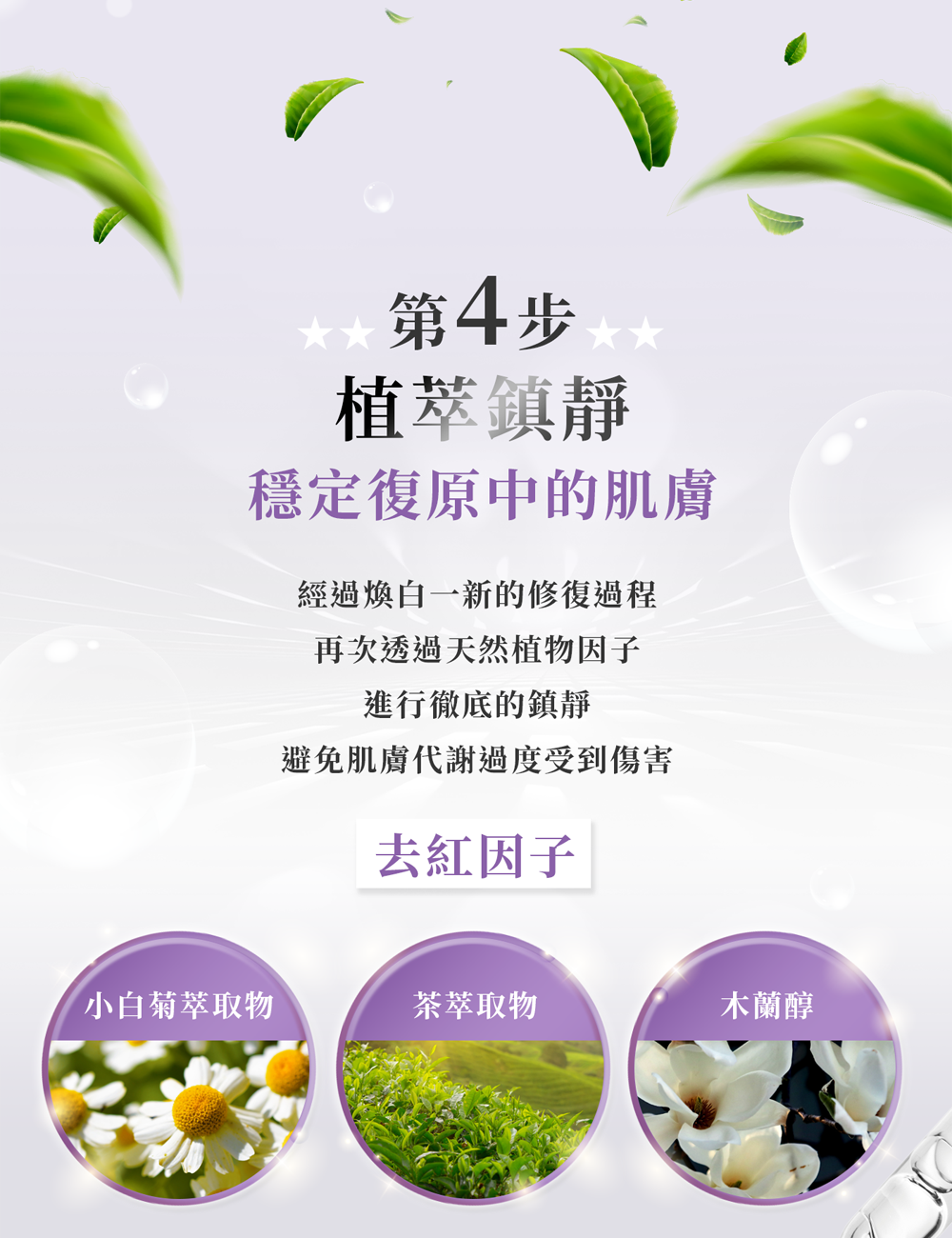 抗痘:舒緩修護,安撫肌膚不適,改養暗沈使肌膚透亮光澤。
