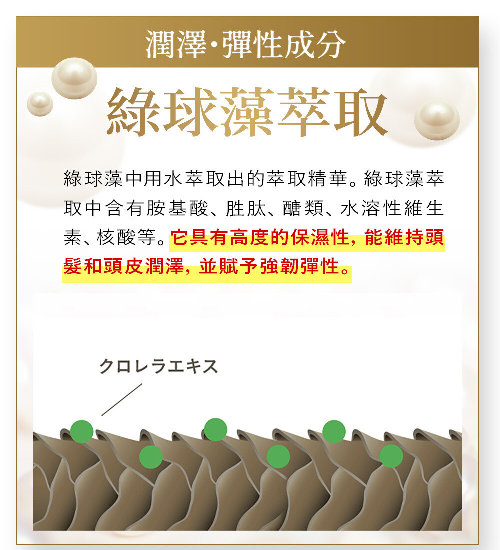 3.綠蟲藻萃取守護頭皮的彈性與潤澤