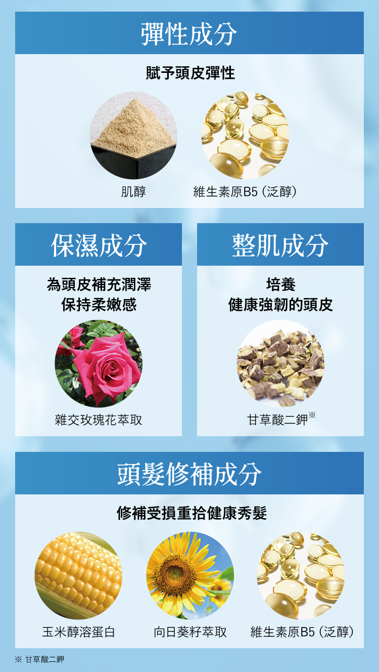 6.具有彈性、保濕、整肌、頭髮修補四大成份!