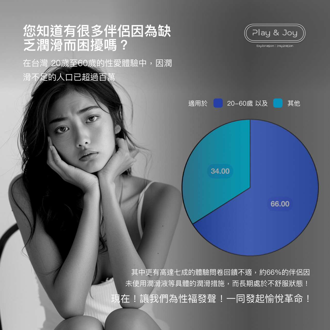 Play & Joy 品覚潤滑液,可依實際需要重複使用於私密部位按摩潤滑保養並增添情趣。本產品不含殺精劑,不具避孕效果。避免接觸眼睛,如有過敏不適,請立即諮詢醫生。