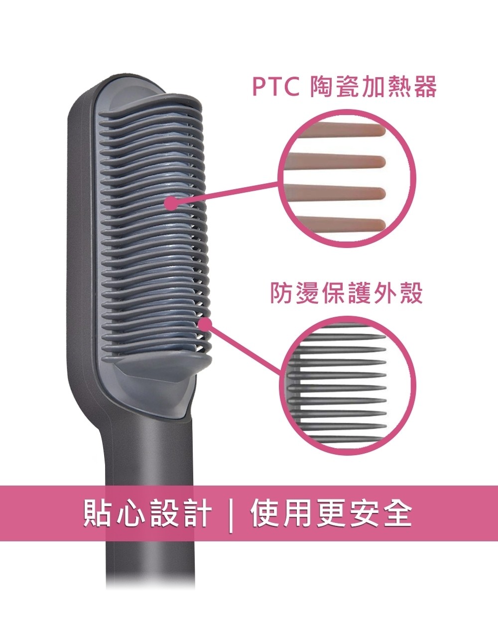 PTC陶瓷發熱體,恆溫不傷髮 專利梳齒設計,隔熱保護防燙手,瞬間拉直,定型持久 60秒快速發熱,即插即用 30分鐘自動關機,安全可靠 360度旋轉防纏繞電線,非常好上手 旅行小夥伴全球通用國際電壓(110-240V)